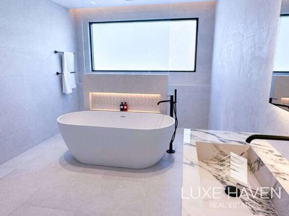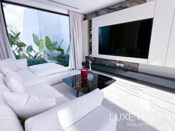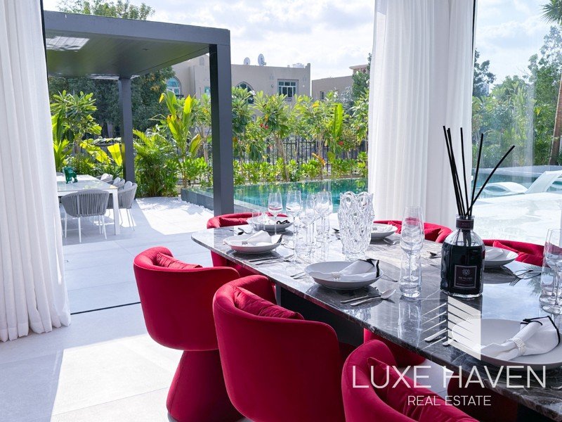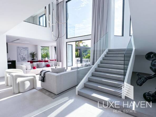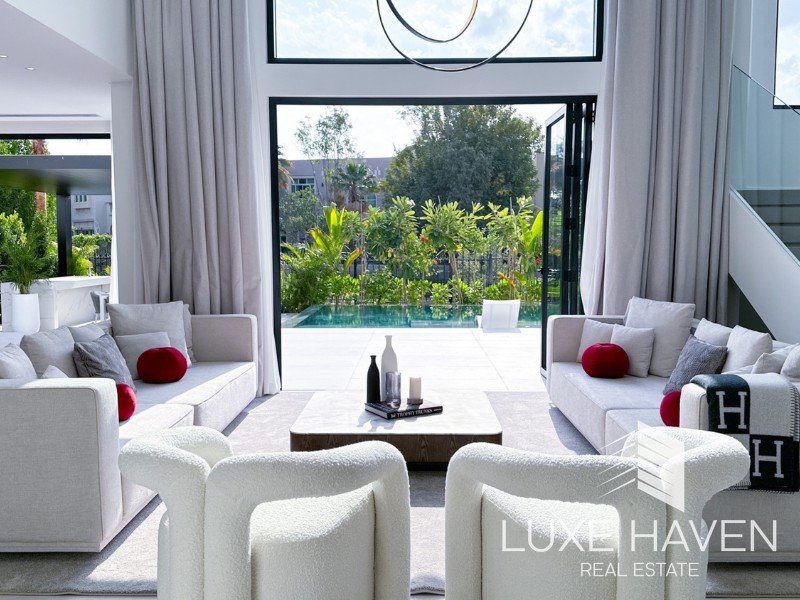 Luxe Haven is pleased to present this beautifully renovated 4-bedroom villa in the prestigious Jumeirah Islands, designed in a sleek Miami-inspired minimalist style. Thoughtfully extended and modernized, the home offers bright open-plan living spaces, enhanced by a signature white palette and elegant contemporary finishes.