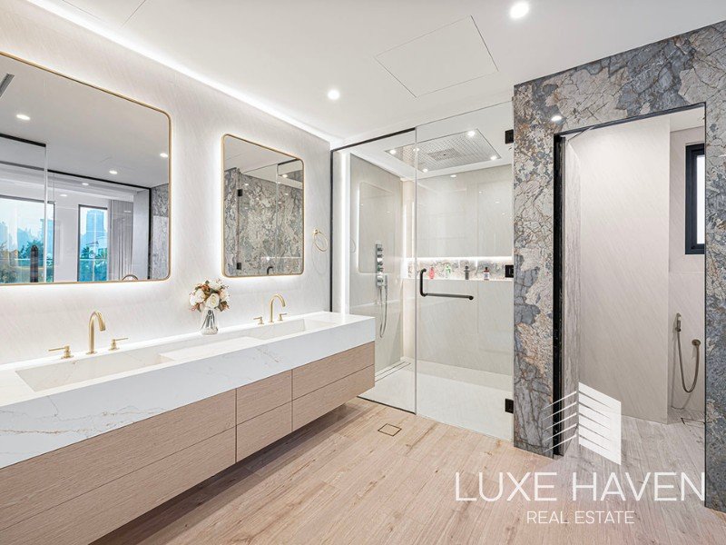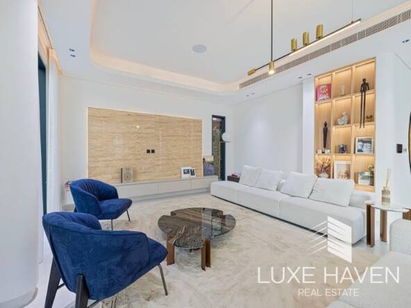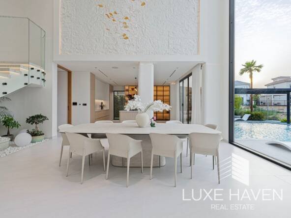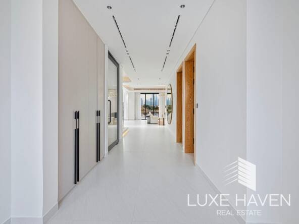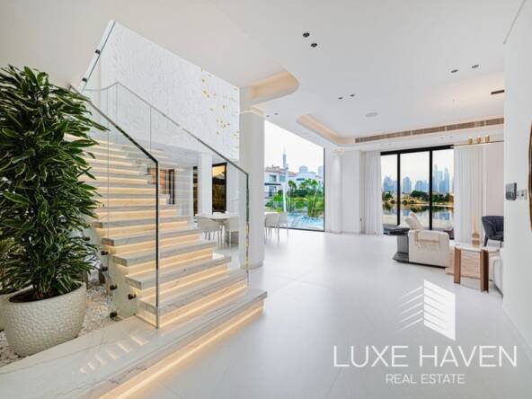 Luxe Haven Real Estate presents this fully upgraded modern villa in the sought-after Jumeirah Islands. Set on a 11,603.60 sq ft plot with 6500 sq ft of built-up area, this custom 5-bedroom home offers exceptional privacy, greenery, and lake views from every upstairs bedroom.